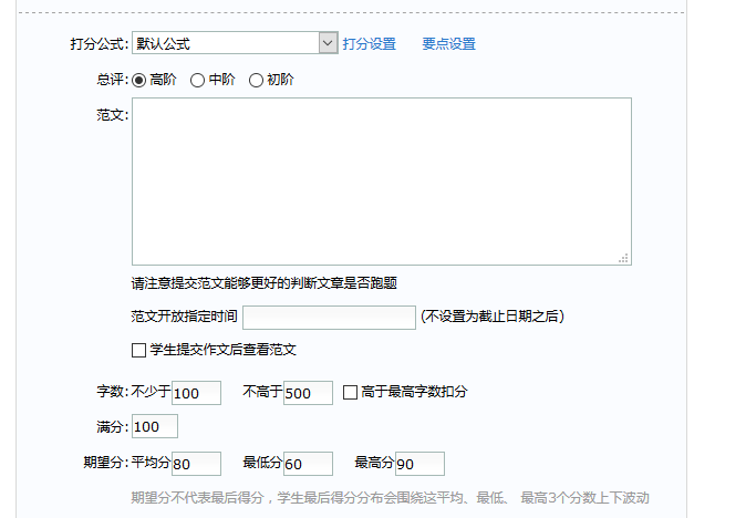 如果不修改,默认设置就是这样的。有些老师没有去修改这些设置的话,基本上不可能得90以上。我自己用学生账号用这个标准写过一次,86,气得手机一扔,什么JB玩意儿。学生倒是高兴,代写作文的老师哪去找。。。然后我一个月没自己买过早饭