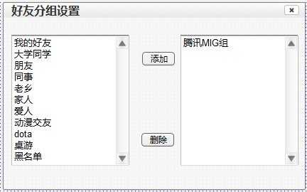 当用户选择了好友分组设置或所在群组设置时,呈现界面如下: