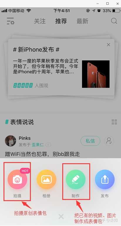 点击“相册”或“制作”从你的相册找到表情包进行DIY