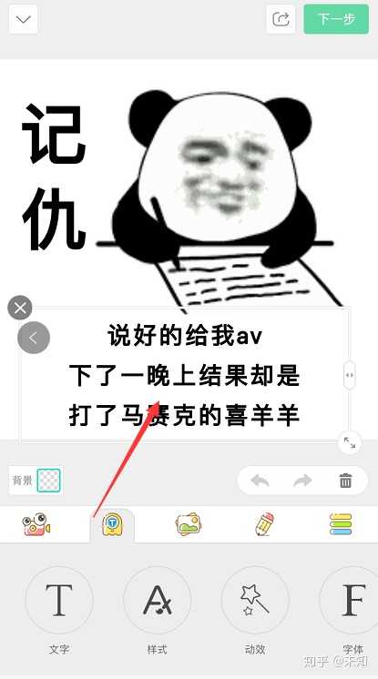 3、表情包制作页面,可以根据自己的需要添加文字,还可以点击右上角的“制作”按钮进入到更详细的页面,添加贴纸。