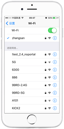 注意:该页面不会自动跳转,无线终端可直接返回到搜索信号的列表中,连接自己的无线信号即可。