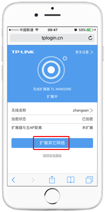 进入到扩展器的管理界面,点击“扩展其他网络”,如下图: