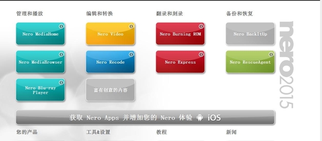 来自德国的DVD刻录工具非常知名nero破解版百度云,nero2016下载版本已经升级~最新nero2016中文版官方版本即将为你打算好,用这款光盘刻录软件很简单就可以为用户提供播放,录制,转换影片,照片,音乐等服务,而且nero16版本光盘刻录软件作为多媒体处理工具可以满足你转化,刻录流媒体,编辑等所有需求nero破解版百度云,多说无益,还是应该用户自行下载nero2016中文版才可以!