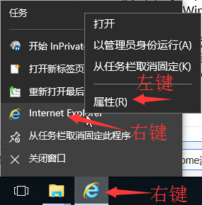 1、右键单击IE程序,打开属性(我是在任务栏里开启的)如下图图示,将更前面引号里面的网址去掉,只留下"C:\Program Files\Internet Explorer\iexplore.exe"( )。本以为这种能够解决,结果再开启浏览器,提示有程序要更改IE主页,看来还有程序在作怪。