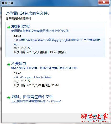 10、将破解补丁文件夹下的“e.exe”复制到易语言 5.8安装根目录下,选择替换