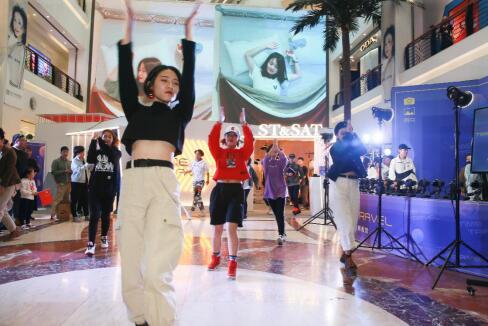 一组劲爆的舞蹈演出将现场活动推向高潮,帅哥辣妹现场热舞,气氛顿时被引爆。让人震撼的是,“时光照相馆”里面一起合拍的人,竟然发生眼前!不要恍惚,都是超人气的Coser:优雅的赫本,性感的麦当娜,可爱的芭比,迷人的小鲜肉,型酷的将来人……,他们穿着星期六(ST&SAT)2018秋冬新品鞋履,全场巡游,邀请众人合拍还派送小礼品,气氛嗨至极点,停不下来的自拍,就怕128G的内存都满足不了你。