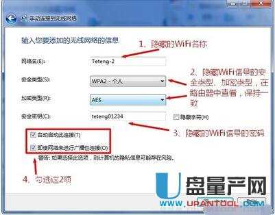 在“网络名称”(在此示例中为Teteng-2)之后输入隐藏的wifi名称->“安全类型”和“加密类型”请检查无线路由器中“无线安全设置”选项下的内容,这里必须与路由器上的安全类型和加密类型保持一致->“安全密钥”,填写隐藏的wifi的密码->选中“自动启动此链接”笔记本电脑怎么设置wifi,“即使网络不在广播也要连接. ”->点击“下一步”.