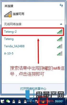 这时,隐藏的wifi信号出现在win7笔记本的无线搜索列表中(在此示例中为Teteng-2).