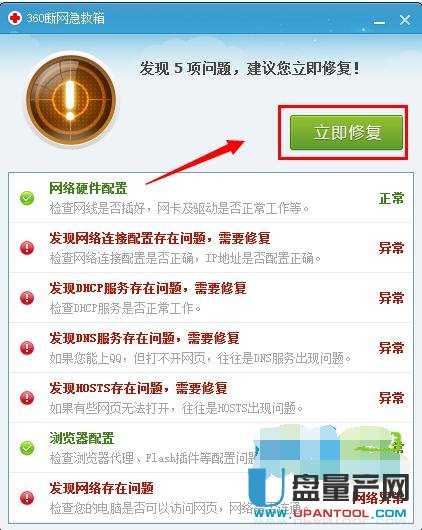 点击“互联网断开急救箱”