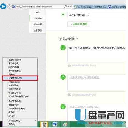 右键单击桌面左下角的主页图标,然后选择设备管理器.