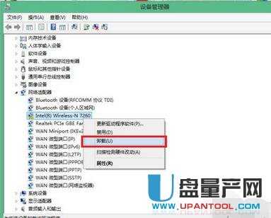 右键单击Inter-7260,然后选择“卸载”.