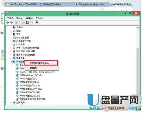 卸载后,右键单击网络适配器,然后选择“扫描硬件更改”.