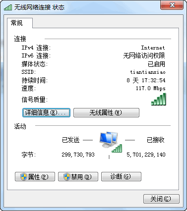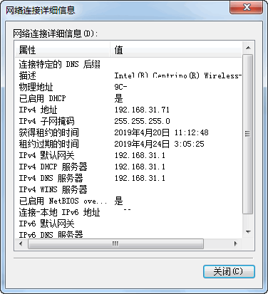 3,然后单击详细信息,您将看到ip,如下所示是正常的,ip通常以192.168开头,有dns和默认网关,则表示IP地址已正确获取.