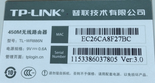 常规路由器管理地址为192.168.1.1,但可能不是. 我们需要转到路由器实体的背面以查看管理地址是什么. 以tplink为例,如下图所示.