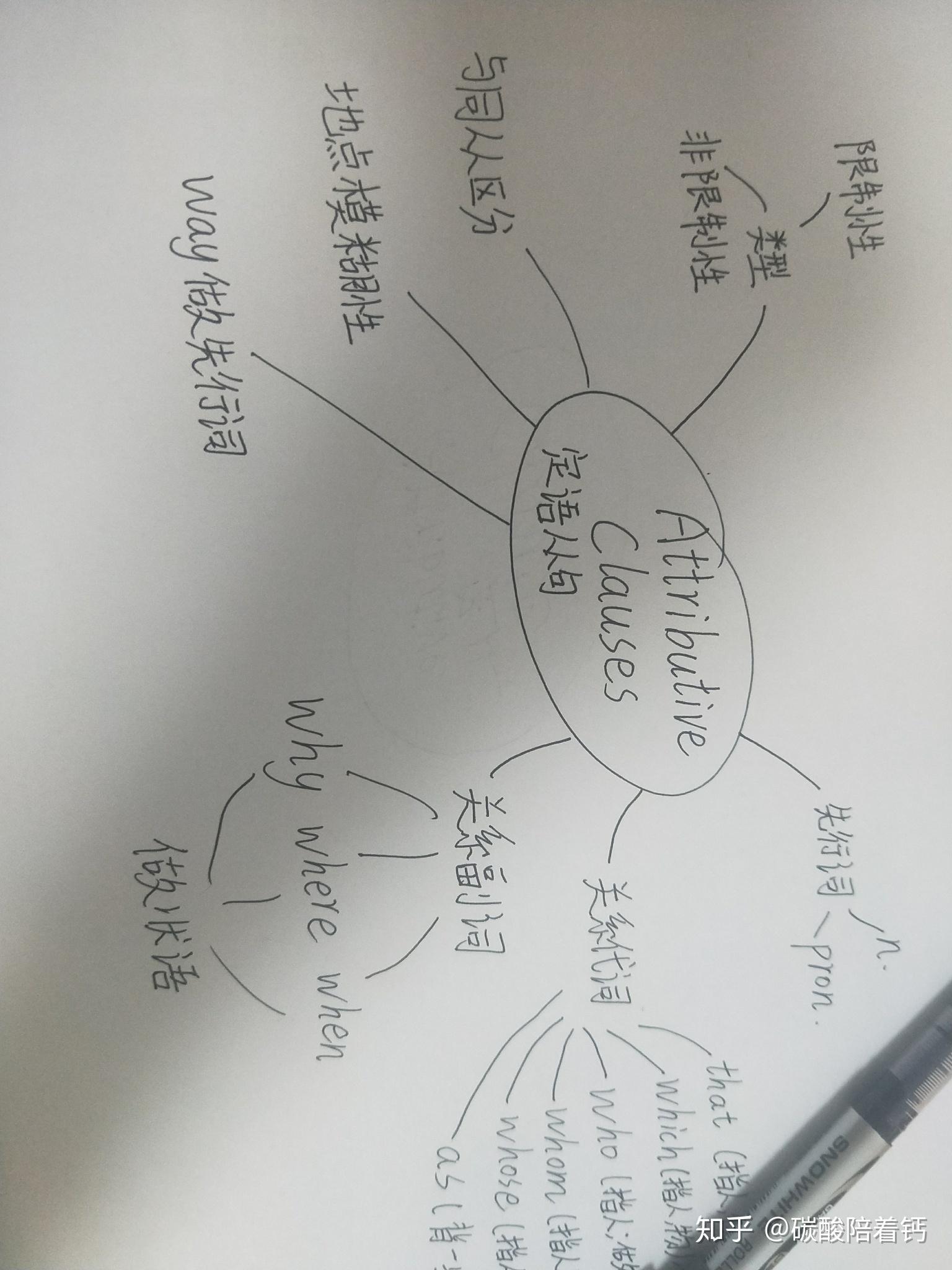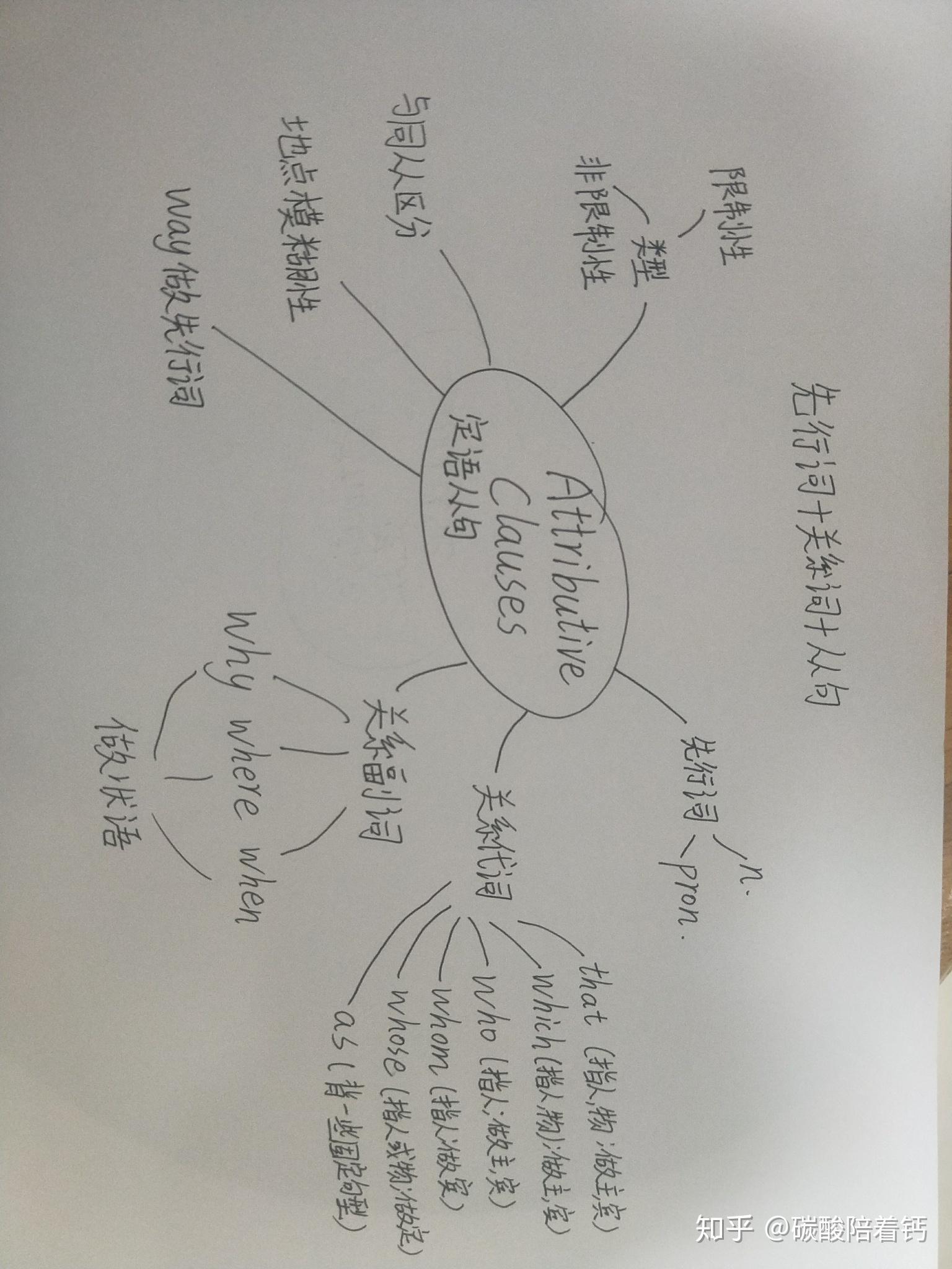以定语从句为例,以下内容将教您如何绘制自己的思维导图. (我只画格式和工艺参考!朋友们可以根据自己的风格来画)