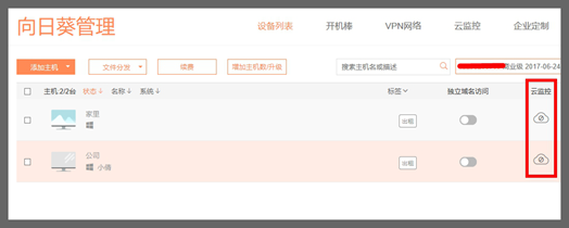 1. 在“官方网站”-“向日葵管理”中找到“云监控”,