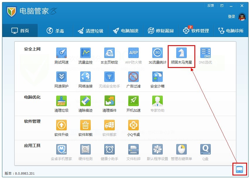 ①运行Computer Manager 6.0及更高版本,单击[工具箱],然后单击[安全Internet]类别下的[顽固的木刻星号]图标.