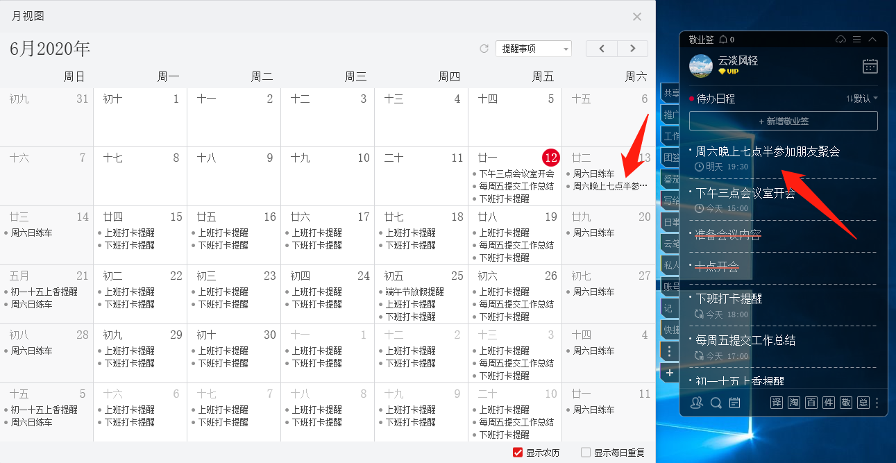 小李说她在工作时没有时间经常看电话,而且她的注意力必须始终在计算机桌面上,因此她想使用一个方便的计算机桌面日历软件来添加工作时间表提醒. 告诉她,我现在使用的约会软件专用于同步手机和计算机上的日历提醒.