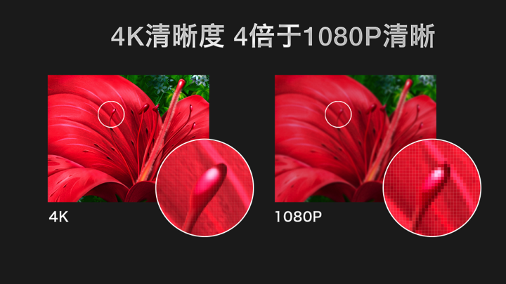 4K屏幕的精细度也高于全高清屏幕. 原始1080P中的4K像素代表4K,更清晰细腻.