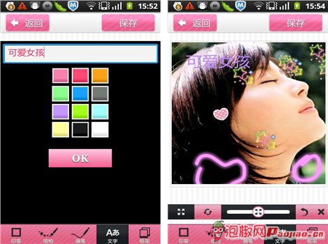除了添加可爱的小饰品图形外,还可以增加画笔和文字。手机大头贴软件画笔可以写字也可以画画,画笔的颜色都十分漂亮,属于那种会闪闪发亮的那种,一般女生都会特别喜欢这种画笔的吧,里面的选项很多,不过不要太贪心把所有颜色都放进去哦,那样会不好看的,只要选择一种喜欢的画上就好啦。