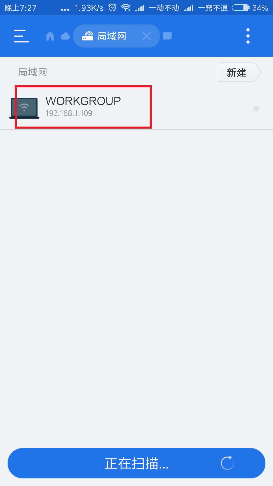 A: 您的计算机已更新IP地址,再次单击应用中的“扫描”按钮,然后单击新出现的文件夹