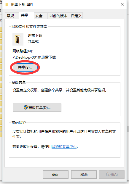 输入高级共享设置