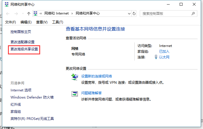 (无论如何执行此步骤,只需打开网络共享中心即可)