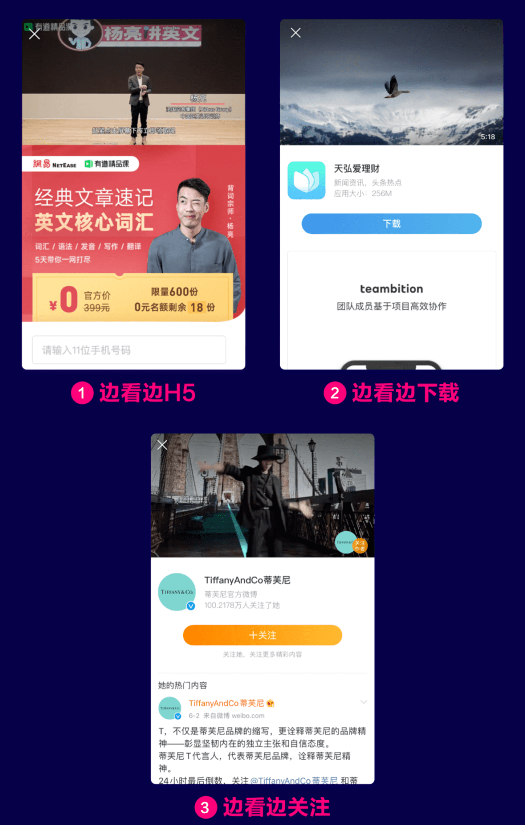 微博的流量分布是社交内容流量的90%+商业流量的10%,Super Fans 3.0将纯效果广告升级到社交内容场景,并推出了“边看边画图”系列,直接突破了广告的局限性原生图形/视频和图形/视频卡的转移效率低下,自然流量有限,使用更多的原生广告样式来叠加更多的原生转移方法,从而覆盖所有广告和自然流量. 内容浏览和转换转换的有效集成缩短了广告转换路径. 无论用户是观看视频还是浏览图片,他们都可以同时浏览H5,下载APP和关注帐户. 多场景模式可以满足广告客户在转移,下载和关注等各个层次上的需求,并可以帮助更多的广告客户实现营销. 在实现目标的同时,进一步开拓商业和社交内容的场景.