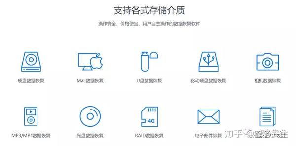 支持多种数据存储介质,包括: IDE / ATA硬盘恢复数据软件,SATA,SCSI,USB和其他接口存储介质; SD \ TF \ SDHC和其他类型的存储卡,记忆棒,U盘,MP3 / 4,CD-ROM / RW,DVD-R / RW和其他类型的光盘,同时,它也可以有效地处理超过2TB磁盘的数据恢复,4096个扇区大小的恢复,系统崩溃以及无法启动数据恢复.