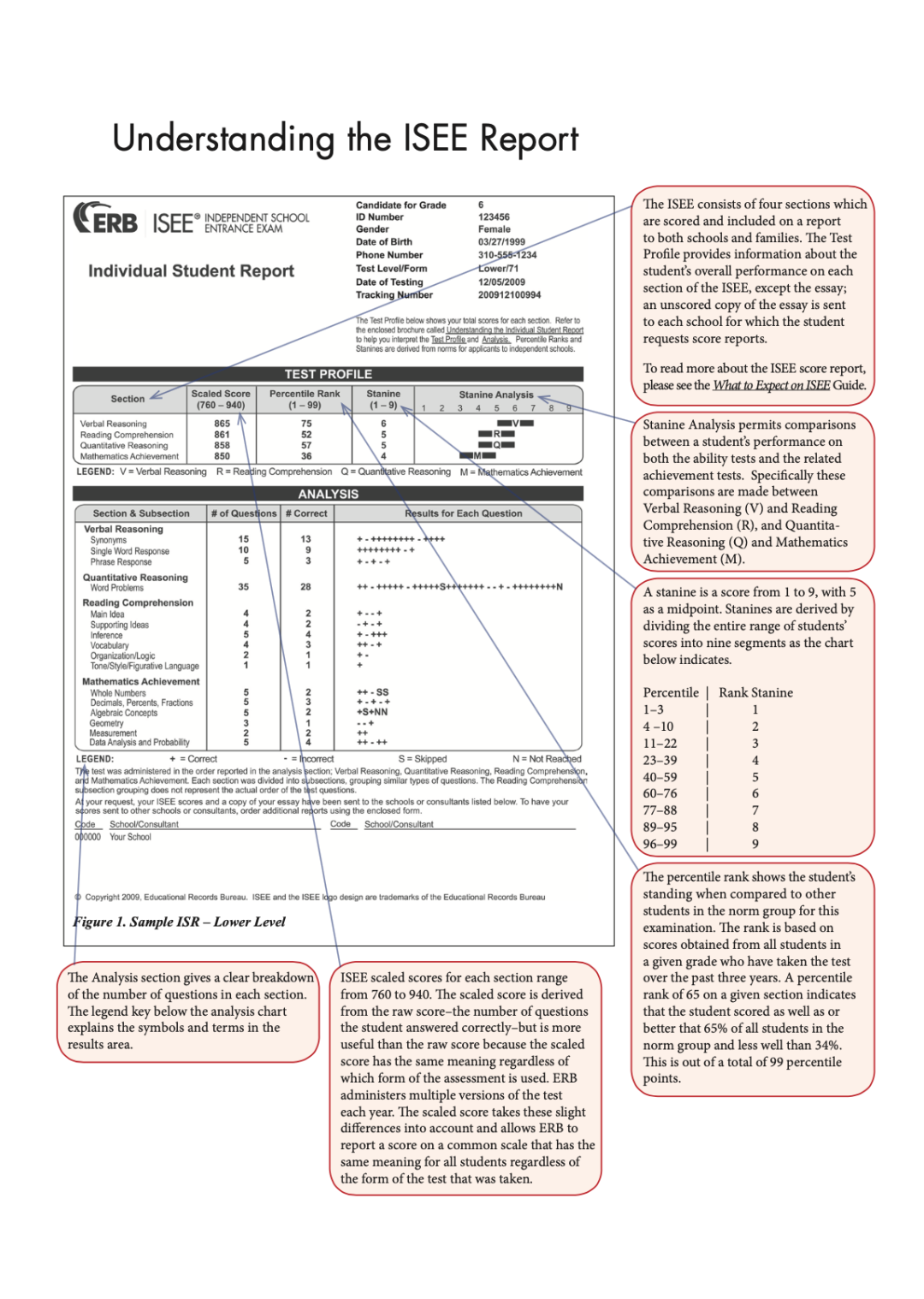 ISEE成绩单上有原始分数,百分位分数和标准的9分,供学校参考. 多项选择题的分数将发送给家长和学校isee考试真题,作文部分将不会评分,而是发送给申请的学校.