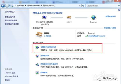 继续单击“网络和共享中心”,输入并查看是否存在“设置新连接或网络”