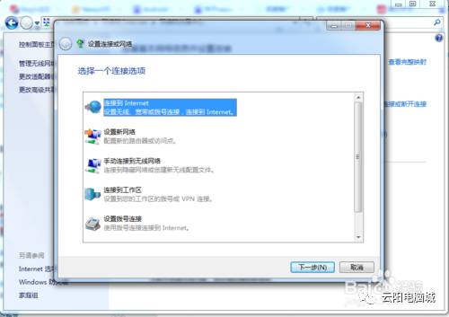 这时,我们选择“连接到Internet”,win7将自动搜索带有信号的无线wifi网络.