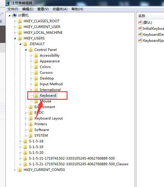打开[.DEFAULT]文件夹后,找到其中的最后一个文件夹[Keyboard].