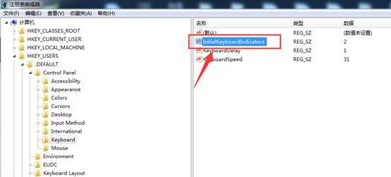 这时,我们将转到窗口的右侧,并在[键盘]中找到一个名为[InitialKeyboardIndicators]的文件