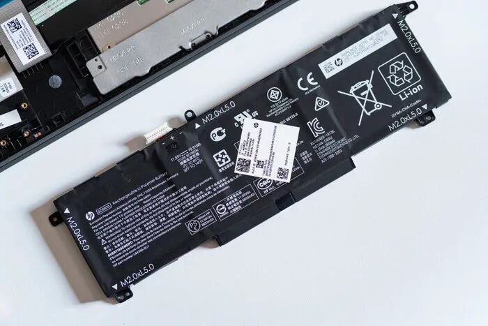 应该注意的是,暗影精灵6使用的是长方形的片状锂离子电池,质地有些柔软. 因此,在拆卸过程中要非常小心. 请勿让电池接触坚硬的物体. 注意避免损坏.