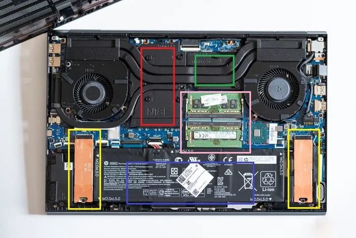 由于M.2硬盘驱动器下方隐藏有固定Shadow Elf 6电池的螺钉之一,因此必须先拆卸硬盘驱动器,然后才能取出电池.