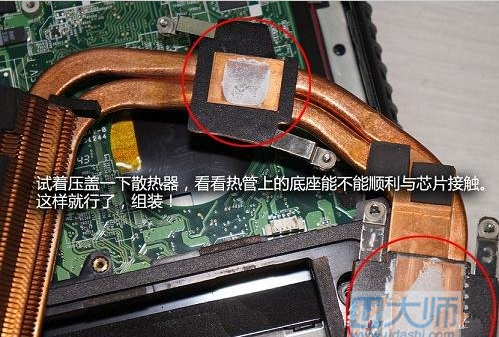 上述步骤结束后,您可以开始组装. 首先是安装热管和散热片.