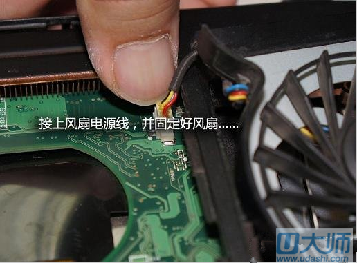 3. 卸下散热器风扇的螺钉后,请小心地拔出热风扇的4PIN电源,如图所示: