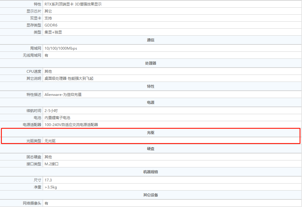 我打开JD平台搜索笔记本电脑,按价格排序,然后随机单击一些目前价格在30,000元左右的笔记本电脑以查看详细信息. 这些性能强大且外观出色的产品有时甚至可以在规格表中找到有关是否存在光盘驱动器的说明,但是其中许多无法找到前置的参数.