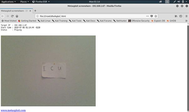 攻击者加载漏洞,包括有效载荷,设置参数和发起攻击. 在短短的几分钟内,他进入了“受害者”计算机,录制了来自麦克风的音频,开始了视频聊天,拍摄了快照……几乎无所不能.