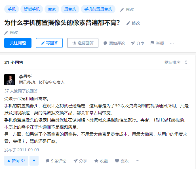 2011年,手机中前置的最高像素级别为200万,这已经成为自拍照的主要功能. 换句话说,当时手机上的前置仍与笔记本电脑相当. 作者提出了每个人在2011年提出的问题. 当时,消费者仍在想“为什么手机前置的像素通常不高”. 每个人的答案主要受到网络带宽和成本的限制. 摄像机主要是为了满足最基本的通讯需求. 换句话说,很高兴看到您是谁以及您在做什么. 这正是笔记本电脑相机一直给您的印象.