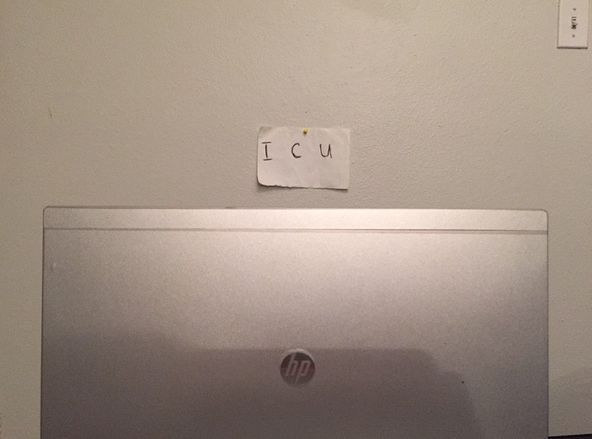 在这个时代,人们在用胶带等掩盖计算机,每个人都遭受迫害的幻想吗?真的不是. 一个外国朋友曾经做过一系列实验. 为了模仿受害者,他将此贴纸留在笔记本电脑后面的墙上,上面贴着令人毛骨悚然的信息ICU(我在看着你).