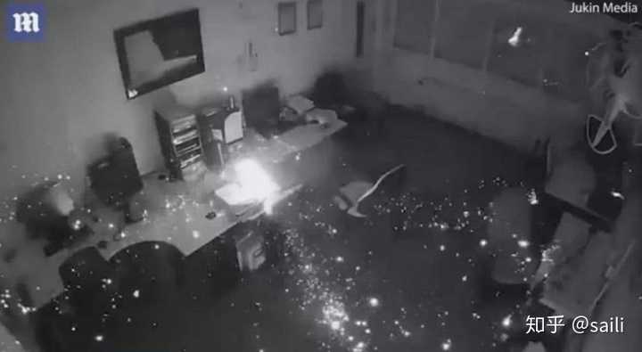 上图显示了国外维修站. 电池在晚上突然燃烧起来并爆炸.
