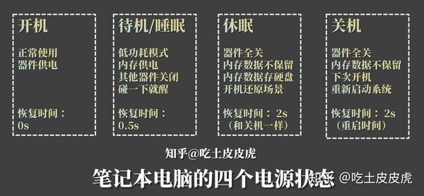 这些术语在ACPI协议中,即系统电源管理功能中的[休眠状态],包括[S0-S5]六个状态