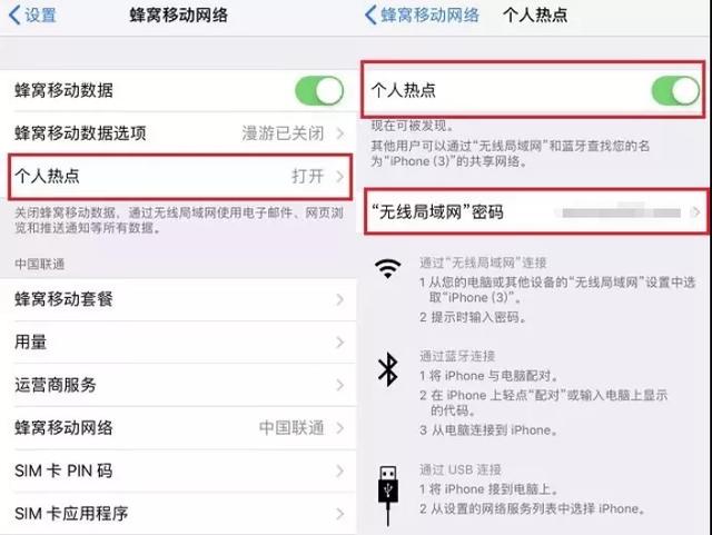 让我们以iPhone为例. 首先,在电话设置中输入蜂窝移动网络并打开数据. 目前,我们可以找到一个个人热点选项. 我们可以打开此开关,然后设置名称和相应的密码. . 这实际上打开了个人热点,现在我们要做的就是用我们自己的计算机连接到该热点.