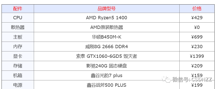 此配置使用了一代Ryzen,自然会考虑它的性价比. 目前,如果您想以400元左右的价格购买4核8线程cpu,恐怕只有Ryzen 5-1400. Ryzen 5 1400处理器具有4核和8进程,GTX1060 6G图形卡,8G DDR4内存,这种阵容对于玩各种大型游戏还是很香的,而且高特效也没有问题. 整台机器的价格在3000元左右. 非常受欢迎.