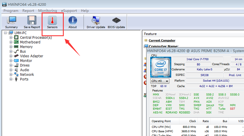 请忽略特定的CPU信息. 我将带我的机器进行演示,然后向右下拉以在红色框中找到信息.