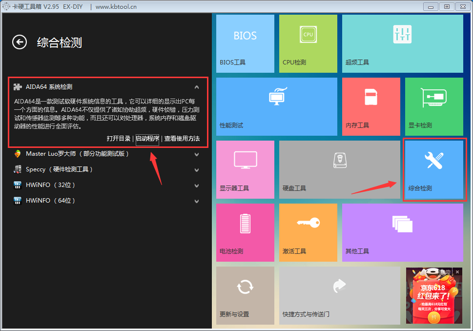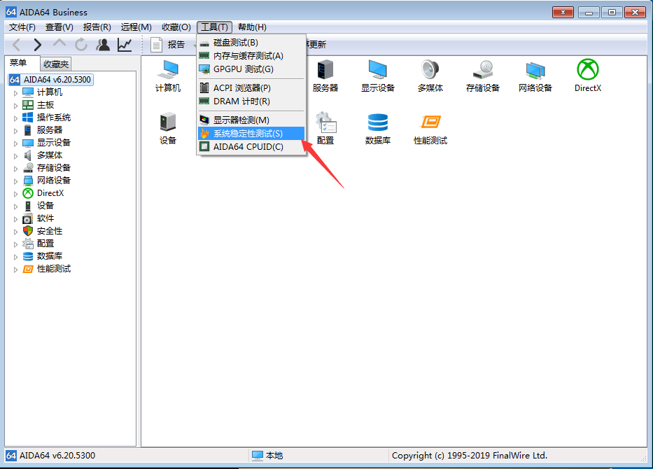 依次单击“综合测试”-“ Aida64系统测试”->启动程序.