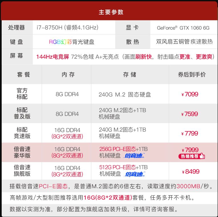 机械师T90-T6CP具有第八代i7-8750H处理器和最高的GTX 1060图形卡. 144Hz游戏显示器还可以享受无撕裂的游戏屏幕,就综合性能而言,它可以满足市场上的3A杰作. 关于游戏的广阔世界观,如果加载速度中没有固态硬盘,那将是泥泞的. 同时,Mechanical T90最多支持32GB DDR4内存和256个PCIe固态驱动器,因此玩家在加载地图时无需等待太长时间.
