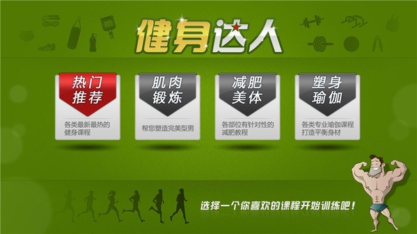 软件简介 : 健身达人是一款帮助用户足不出户达到健身减肥目的电视应用。您只要打开应用,就如同进入健身房,有的健身教练为您量身制定健身计划并带领您开始锻炼,同时锻炼过程中还可以通过电视机实时地对姿势进行矫正。